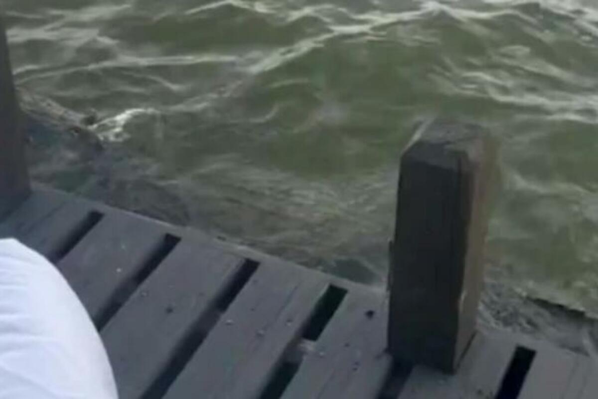 Aligator je proveo neko vreme „krstareći u blizini njihovog doka“, a zatim otišao.