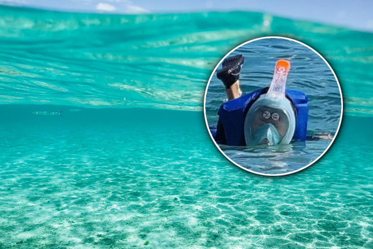 Naime, čovek je sam ful opremom ušao u more, ali ništa od ovoga ne bi bilo zapaženo da nije imao masku kojom je zaštićena cela glava, a sam vrh podseća na ajkule.