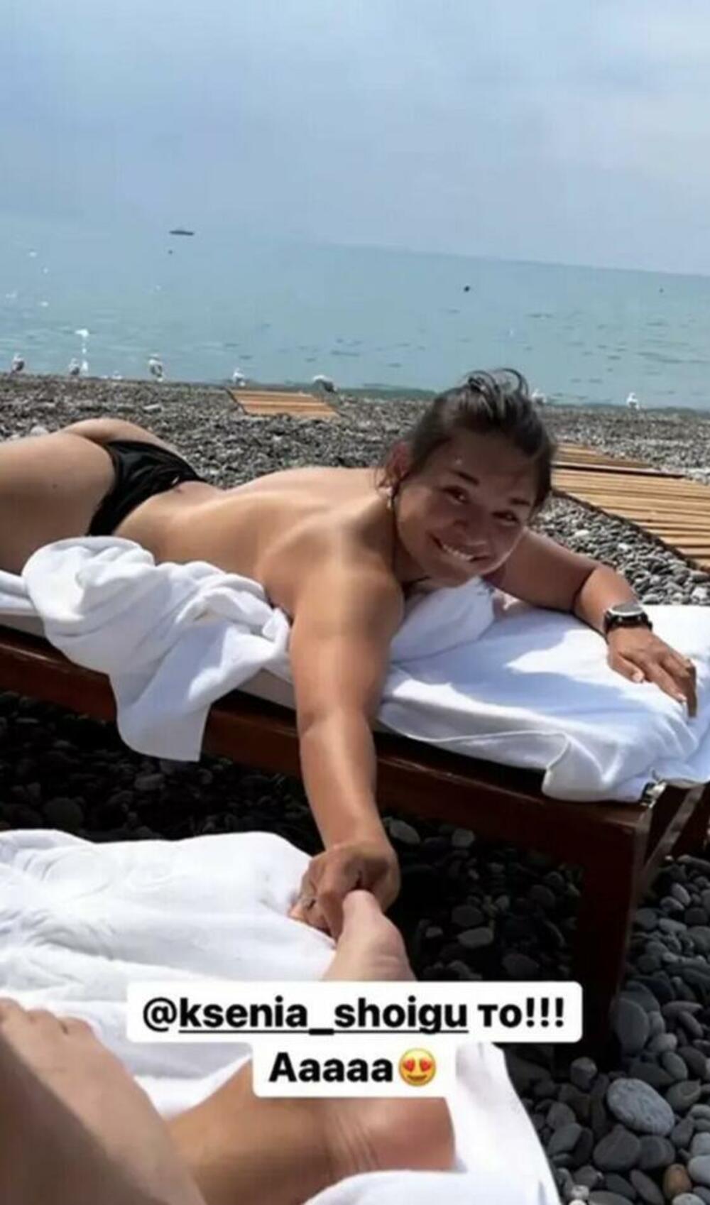 Ksenija Šojgu snimljena je kako se sunča u toplesu na plaži uz Crno more i uživa u suncu dok još može, dok s druge strane vojska njenog oca trenutno učestvuje u ukrajinskom sukobu. Ksenija se nedavno susrela i s ruskim predsednikom prilikom posete Sankt Peterburgu.