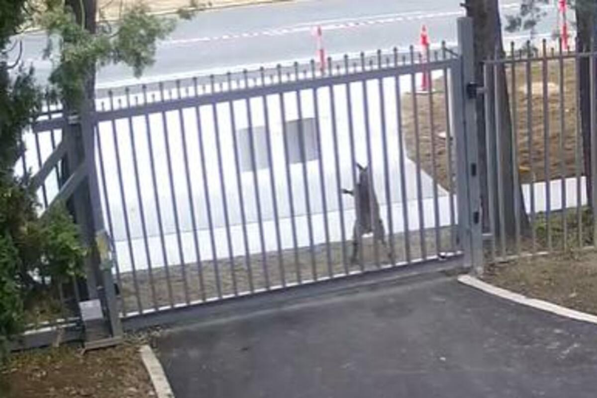 Na njemu se vidi kako se kengur, koji je prolazio trotoarom pored kapije, iznenada zaleće ka rešetkama i pokušava da se provuče. Prošla mu je samo glava, ali su ramena zapela, pa je morao da odustane.