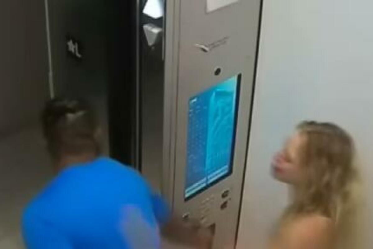 Kortni Kleni (26) uhvaćena je na snimku nadzorne kamere u liftu kako uporno udara svog dečka Kristijana Obumselija (27), dok on pokušava da se odbrani.