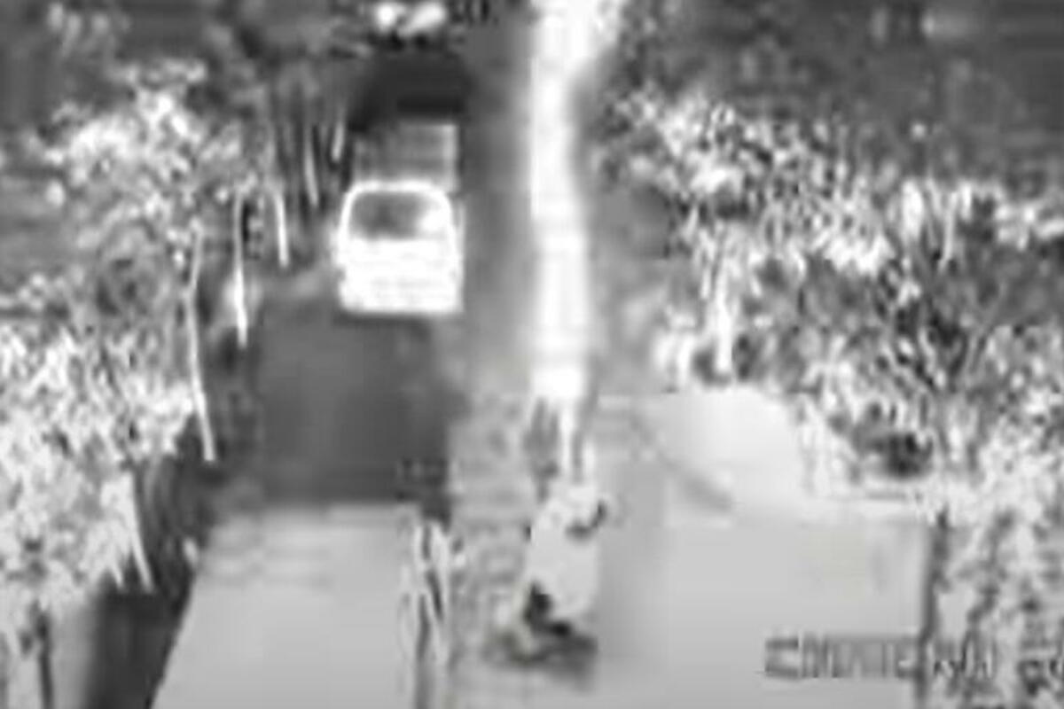 Na snimku se mogu videti ljudi koji bezbrižno prolaze putem dok pada kiša, a čovek koji korača iza njih očekuje da učini isto ali biva šokantno sprečen jakim udarom groma. Udar je toliko snažan da on svom snagom pada na zemlju.