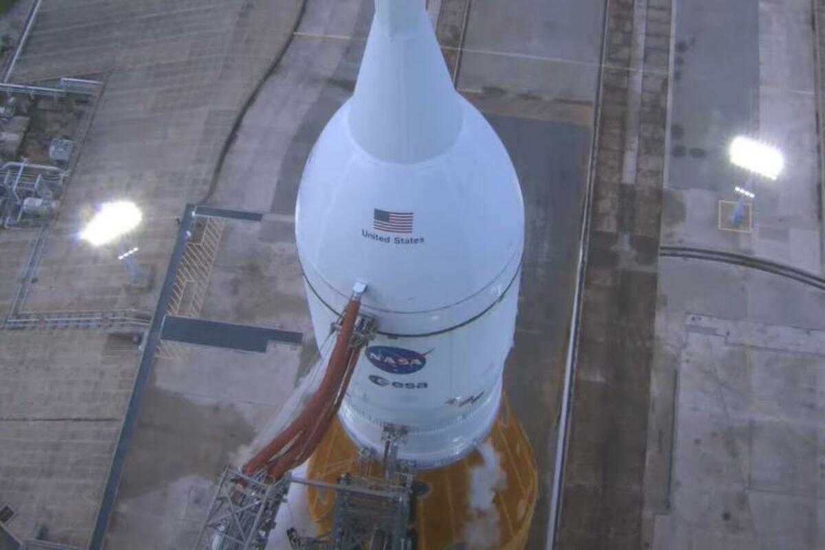 NASA je više puta počinjala i zaustavljala punjenje rakete "Spejs lonč sistem" (Space Launch Sistem) sa skoro milion galona superhladnog vodonika i kiseonika. Uzrok je curenja visoko eksplozivnog vodonika na istom mestu gde je došlo do curenja tokom generalne probe u proleće.