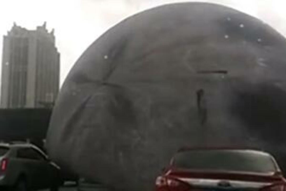 Video sa ulica Fudžoua prikazuje repliku Zemljinog Meseca na naduvavanje kako se kotrlja niz glavni grad jugoistočne provincije Fudžian.