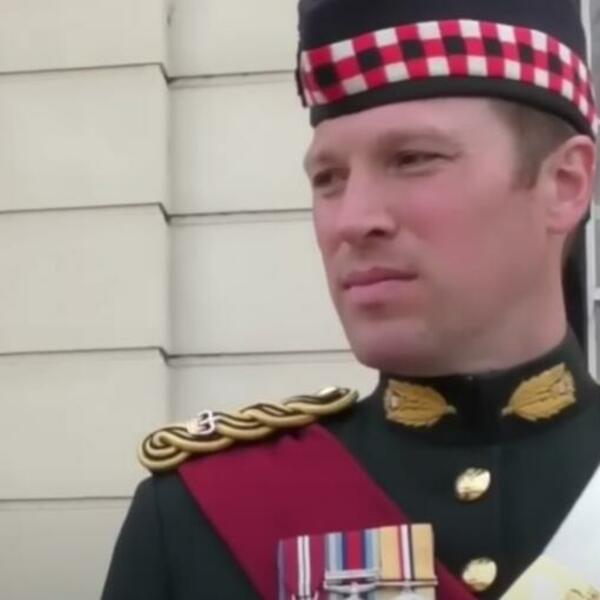 Major Džonatan Tompson iz 5. bataljona kraljevskog puka Škotske našao se ispred i u centru kada je premijerka Liz Tras postala jedna od prvih osoba koja je upoznala Kralja u petak, 9. septembra.