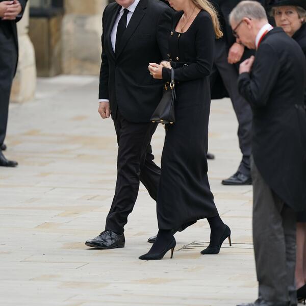 Bivši britanski premijer Boris Džonson došao je u pratnji mlade supruge Kari koja se opredelila za dugačku, crnu haljinu ukrašenu zlatnim dugmićima i kaišem oko struka.