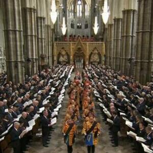 Кralj je izgledao veoma emotivno tokom pevanja državne himne u Vestminsterskoj opatiji. Čarls je ćutao tokom pesme, dok su njegova braća i sestre i članovi kraljevske porodice pevali. Držeći svoj ceremonijalni mač, Čarls je izgledao potpuno slomljeno.