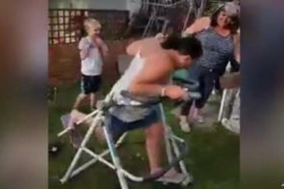 Nismo baš sigurni šta je nateralo ovu simpatičnu gospođu da se oproba na spravi za vežbanje, kada očigledno nije vična tome, ali joj u svakom slučaju čestitamo na upornosti.