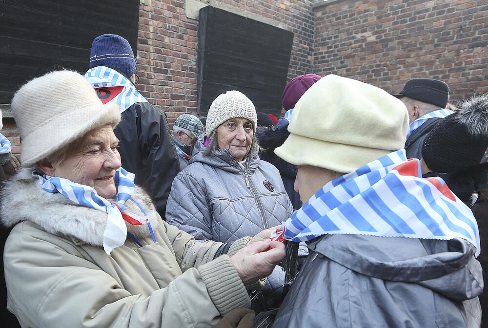 Preživele žrtve holokausta položile su cveće uza Zid smrti u nekadašnjem logoru smrti Aušvic - Birkenau.