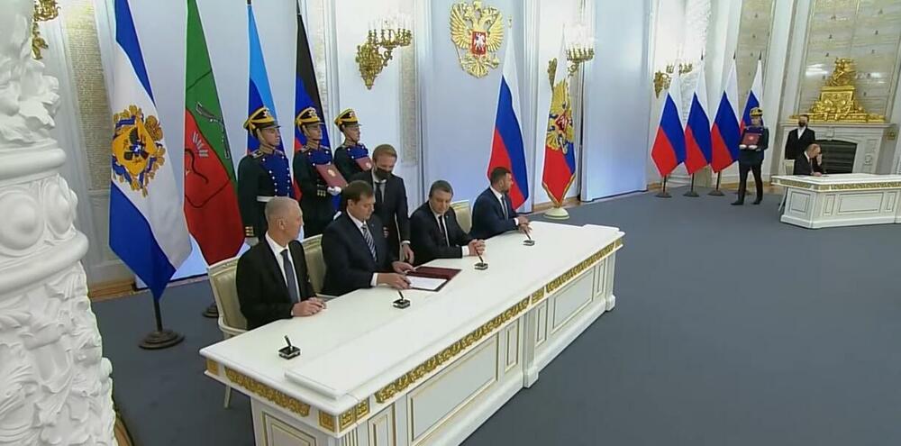 Nakon govora u Kremlju, u kojem je predsednik Rusije Vladimir Putin poručio da su građani Donjecke i Luganske Narodne Republike, Zaporožja i Hersona "odabrali", potpisani su sporazumi o pripajanju tih teritorija Rusiji.