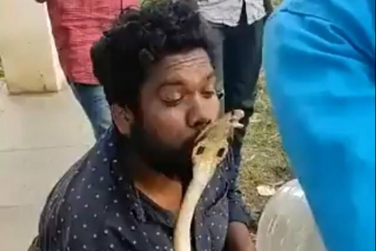 Neimenovani muškarac iz Karnatake se “proslavio” na internetu videom u kojem pokušava da poljubi otrovnicu, koju je navodno prethodno spasao i sada je trebalo da je pusti u divljinu.