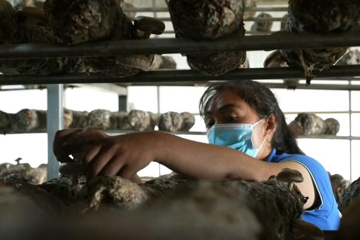 U okrugu Luopu u Autonomnom kineskom regionu Sinđijangu, radnici u bazi za jestive pečurke su zauzeti branjem pečuraka.