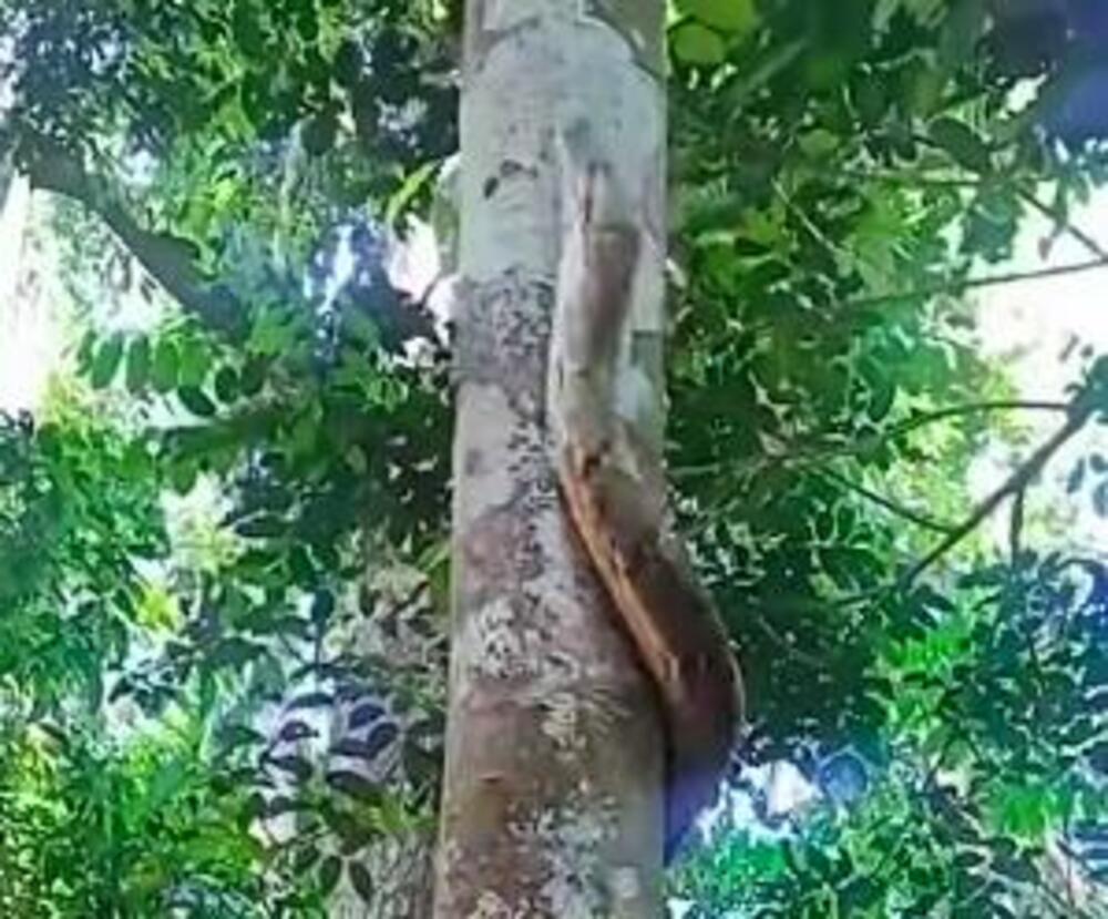 "SAD SE PITAM KO JE SMISLIO PLES OKO ŠIPKE": Snimak ogromne ZMIJURINE kako se penje na DRVO polomio MREŽE! (VIDEO)