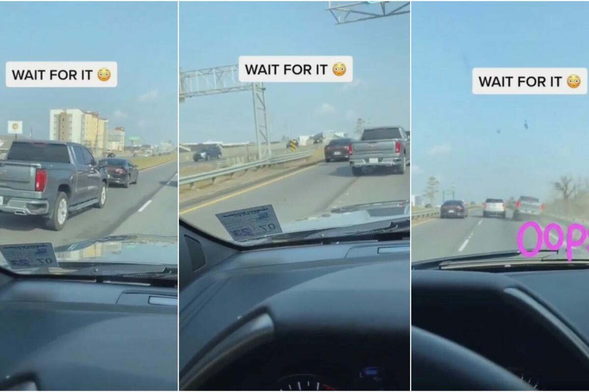 Situacija je kulminirala kad je kamionet izgubio strpljenje zbog vozača u levoj traci koji nije preticao već je kočio i usporavao saobraćaj, pa se kamionet oštro prestrojio i pokušao da pretekne sve s desne strane, samo da bi odmah naleteo na ogradu koja se pojavila niotkuda, a zatim se zabio u automobil u desnoj traci, koji je jedini vozio normalno.