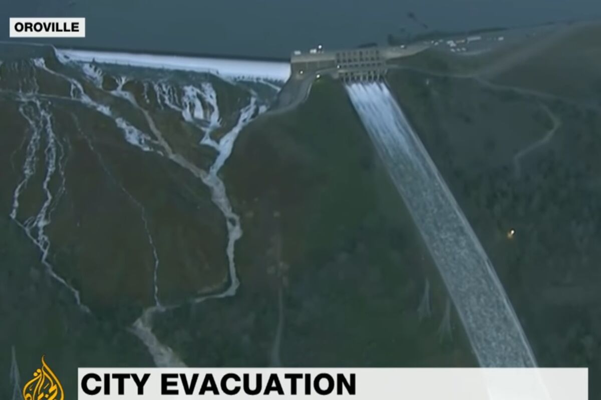 Kalifornijski Zavod za vodne resurse objavio je na Tviteru kako se predviđa da će brana popustiti u sledećih nekoliko sati. Inženjeri su još u četvrtak počeli da ispuštaju vodu iz akumulacijskog jezera uzvodno od brane, primetivši da joj nedostaju veliki komadi betona. Nivo vode u petak je bio manje od dva metra od vrha brane, a porastao je zbog jake kiša i snega koji su usledili nakon nekoliko godina teške suše u Kaliforniji.