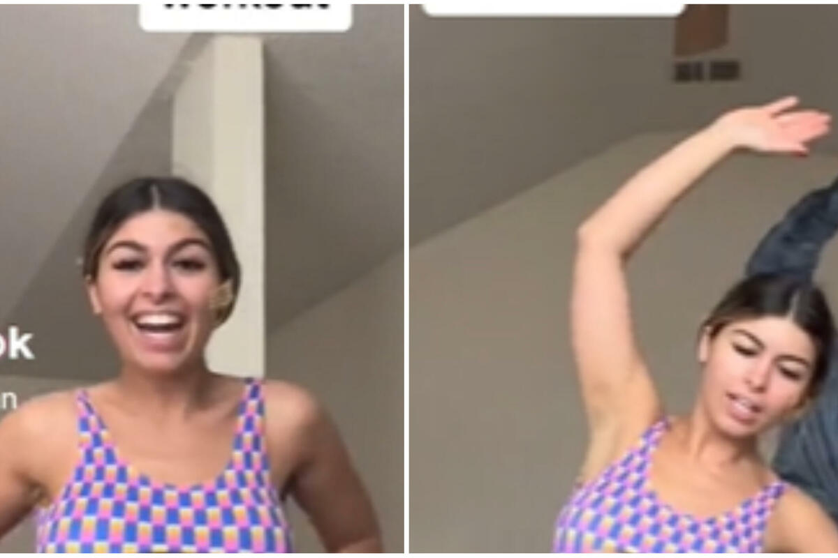 Mlada žena je želela vežbanje kod kuće s dečkom učiniti malo zabavnijim, pa je za tu priliku odlučila obući kombinaciju inspirisanu 80-ima.