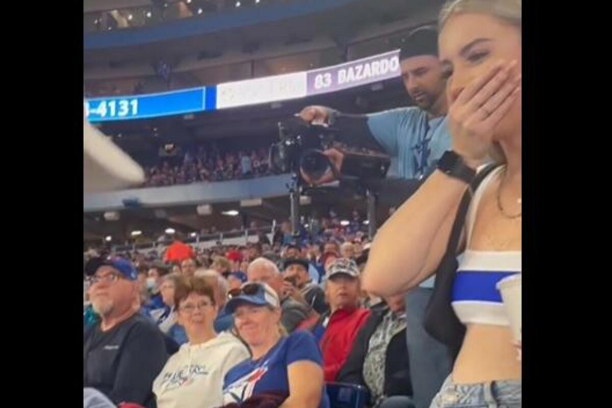 Sve se odvijalo na MLB utakmici Toronto Blue Jaysa i Boston Red Soxa i stvari su krenule 'dobro' po muškarca. Rekao je partnerki da je voli, poljubio je i onda kleknuo ispred nje.