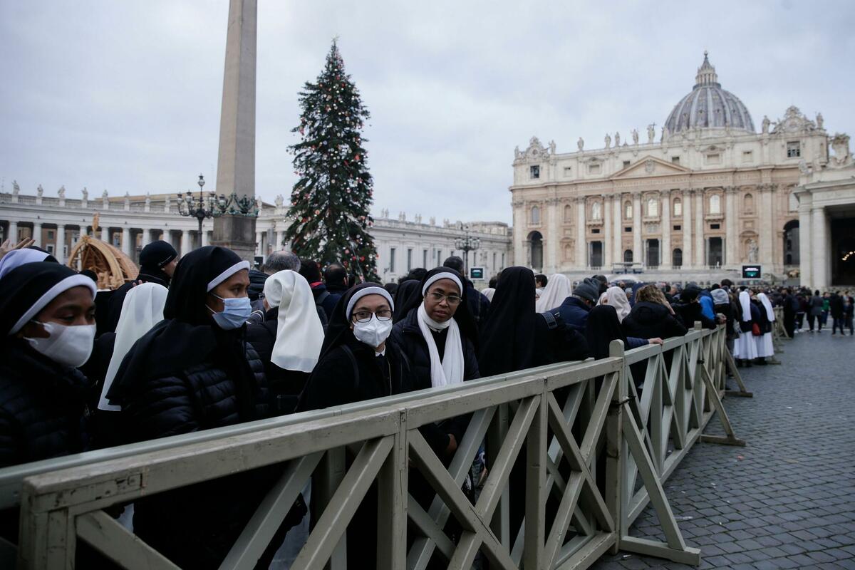 Hiljade ljudi danas se okupilo na Trgu Svetog Petra u Vatikanu, nekoliko sati pre zore, da bi odalo poštu papi emeritusu Benediktu XVI, koji je preminuo u subotu.