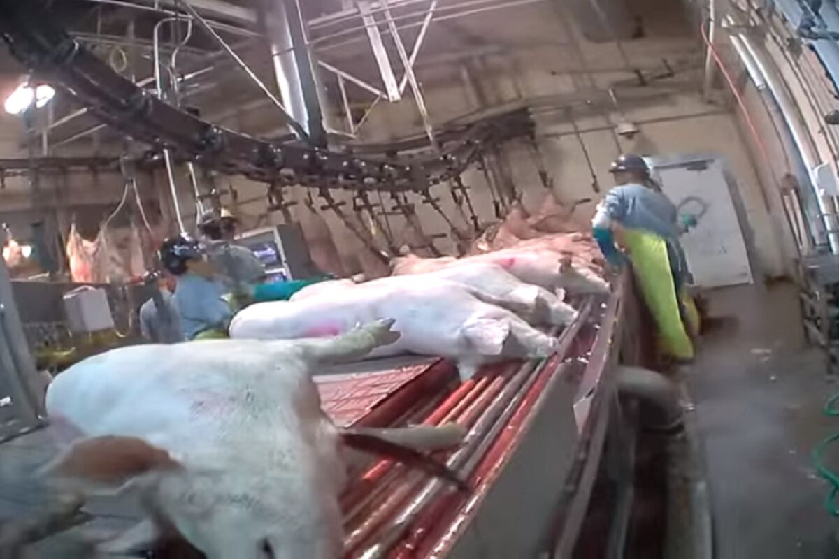 Svinje prvo tuku, umazane fekalijama vuku po podu, kolju ih, a onda zaklane stavljaju na pokretnu traku