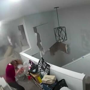 Staklo se raznelo svuda okolo, devojčica je udarila o stolicu u radnji, a onda je odmah ustala i pojurila u naručje muškarca koji je ostao ispred.