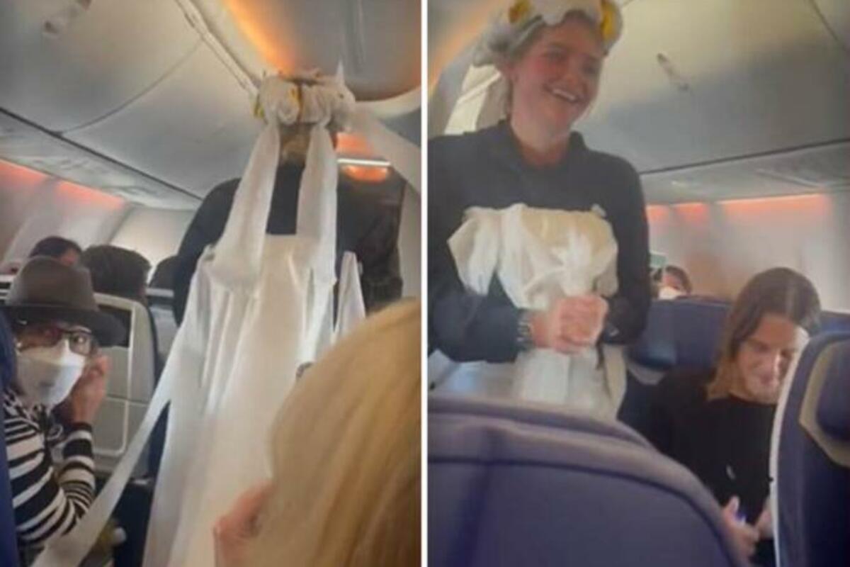 VENČANJE U AVIONU "DIGLO" SVE PUTNIKE NA NOGE: Svi su gledali u MLADINU venčanicu (VIDEO)