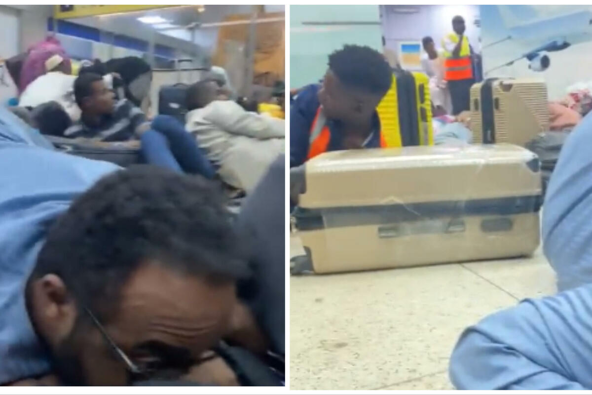 Na drugom snimku mogu se videti uplašeni ljudi koji leže na podu aerodromu sa rukama preko glave, u strahu od neizvesne situacije.