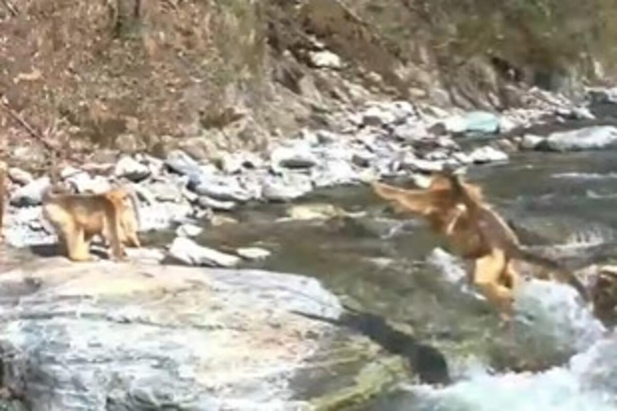Nedavno je u Nacionalnom prirodnom rezervatu Džoudži u provinciji Šansi osoblje slučajno snimilo više od stotinu zlatnih majmuna kako prelaze reku.