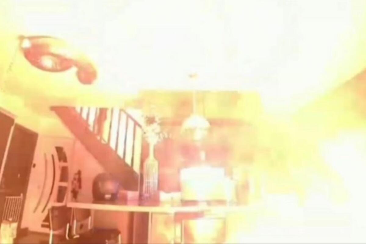 Na snimku se vidi muškarac koji uplašeno silazi niz stepenice sa sprata zbog neobičnog zvuka koji je dopirao iz dnevne sobe. U tom trenutku dolazi do stravične eskplozije. Ubrzo je nastao veliki plamen, a aktivirao se i alarm za dim.