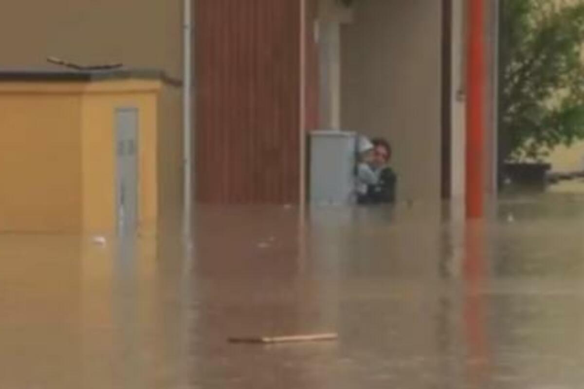 MAJKA SA BEBOM U NARUČJU STOJI U BUJICI, POTRESAN SNIMAK OBIŠAO SVET: Dramatičan prizor RAZORNIH POPLAVA! (VIDEO)