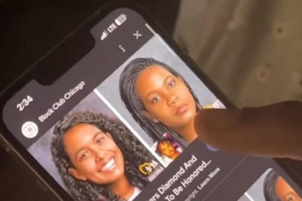 "Ovo je Dajmond Bredli", govori osoba koja drži telefon, pokazujući na Afroamerikanku koja stoji pored nje.