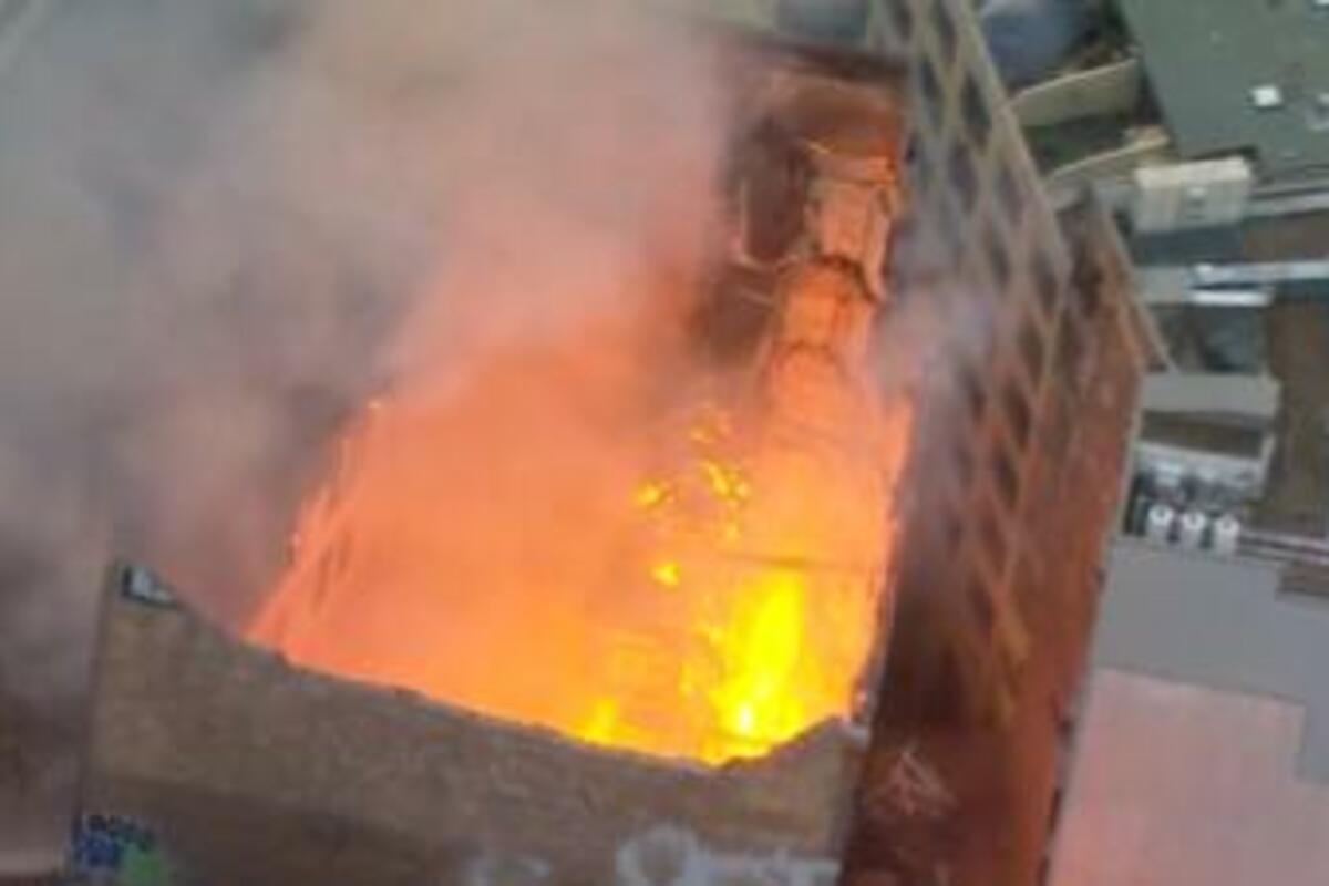 Na stotine ljudi je evakuisano, a fasada zgrade ruši se na trotoar.