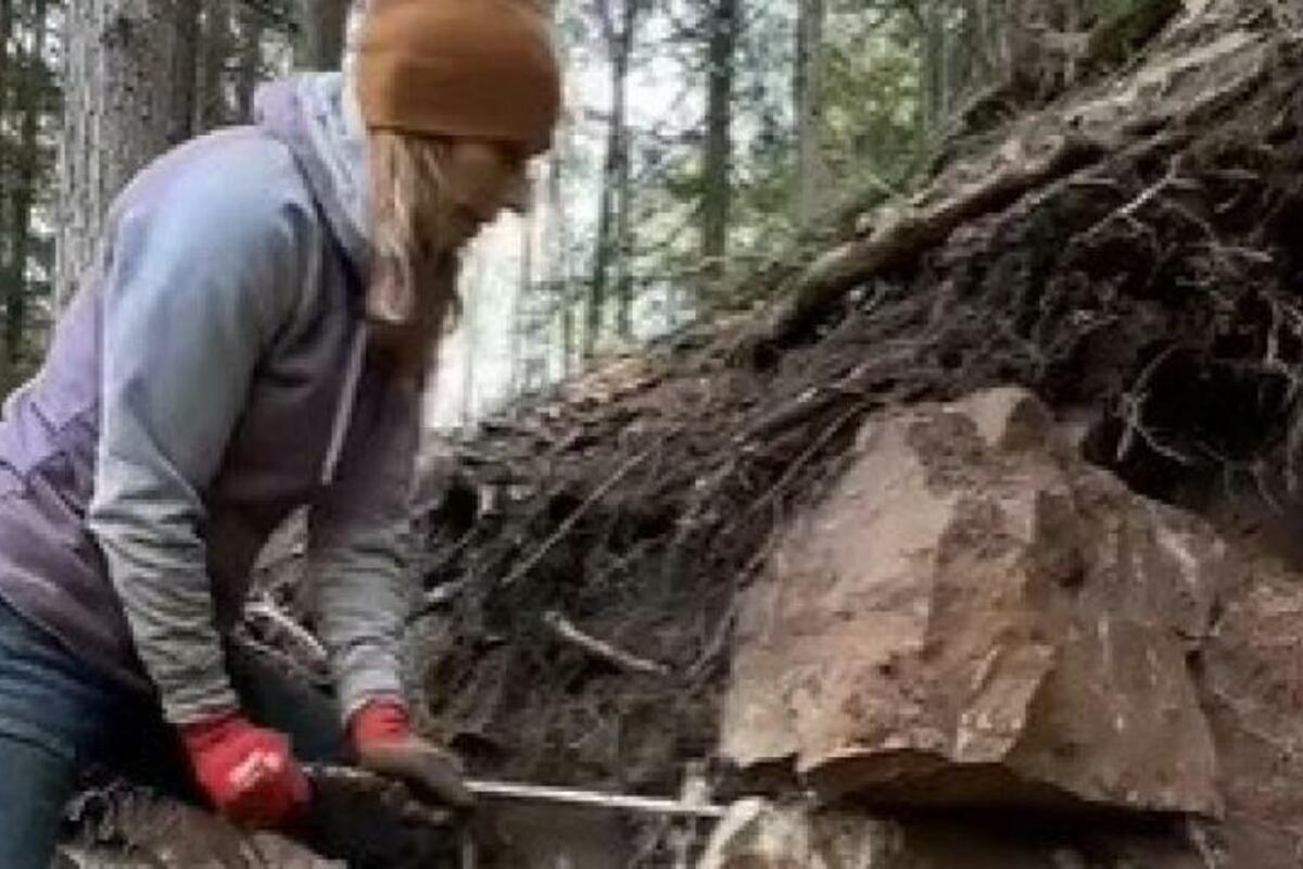 Ona je obilazila šumu i u jednom trenutku sela na stenu da se odmori kad se ispod njenih nogu odronio ogroman komad kamena. Kriknula je od šoka, ali potom je zaintrigirano prišla malo bliže da pogleda, a potom dohvatila i kramp i čelične poluge kako bi razdvojila ogroman kamen.