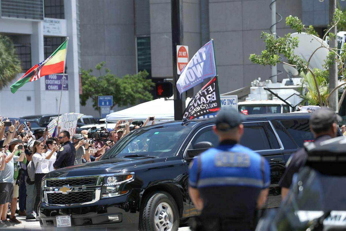 Tramp je stigao u zgradu suda, a po dolasku na sud, zadržan je u autu, pod visokim obezbeđenjem.