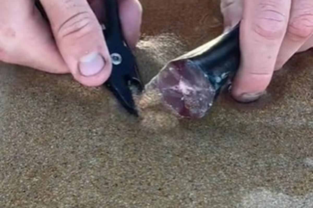On je objavio snimak koji liči na scenu iz horor filma, u kojoj kleštima pokušava da izvuče ogromnog crva iz peska.