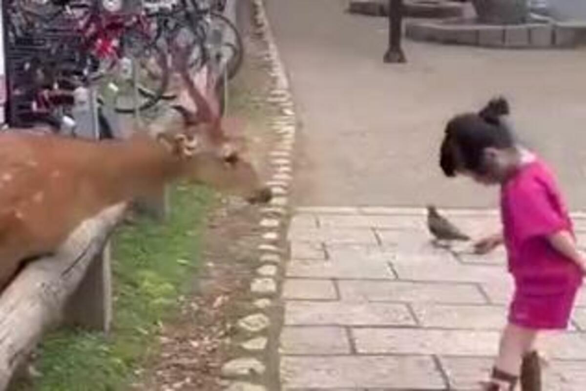 NIŠTA SLAĐE DANAS NEĆETE VIDETI, OVO ĆE VAM IZMAMITI OSMEH NA LICE: Devojčica se NAKLONILA jelenu, a on... (VIDEO)