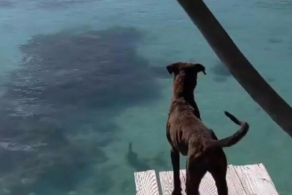 Naime, ovaj pas ,koji je srednje veličine, uočio je neobično stvorenje u vodi koje mu nije delovalo nimalo prijateljski, a ispostavilo se da je njegov instinkt bio ispravan budući da je u vodi bila ajkula. Pas je, uočivši opasnost, bez mnogo premišljanja odmah uskočio u vodu i pojurio smrtonosnu ajkulu. On ne samo da je uskočio u duboku vodu sa prilične visine, već je počeo da pliva jureći ajkulu i da laje za njom. Na opšte zaprepašćenje, ajkula se uplašila i zaista pobegla.