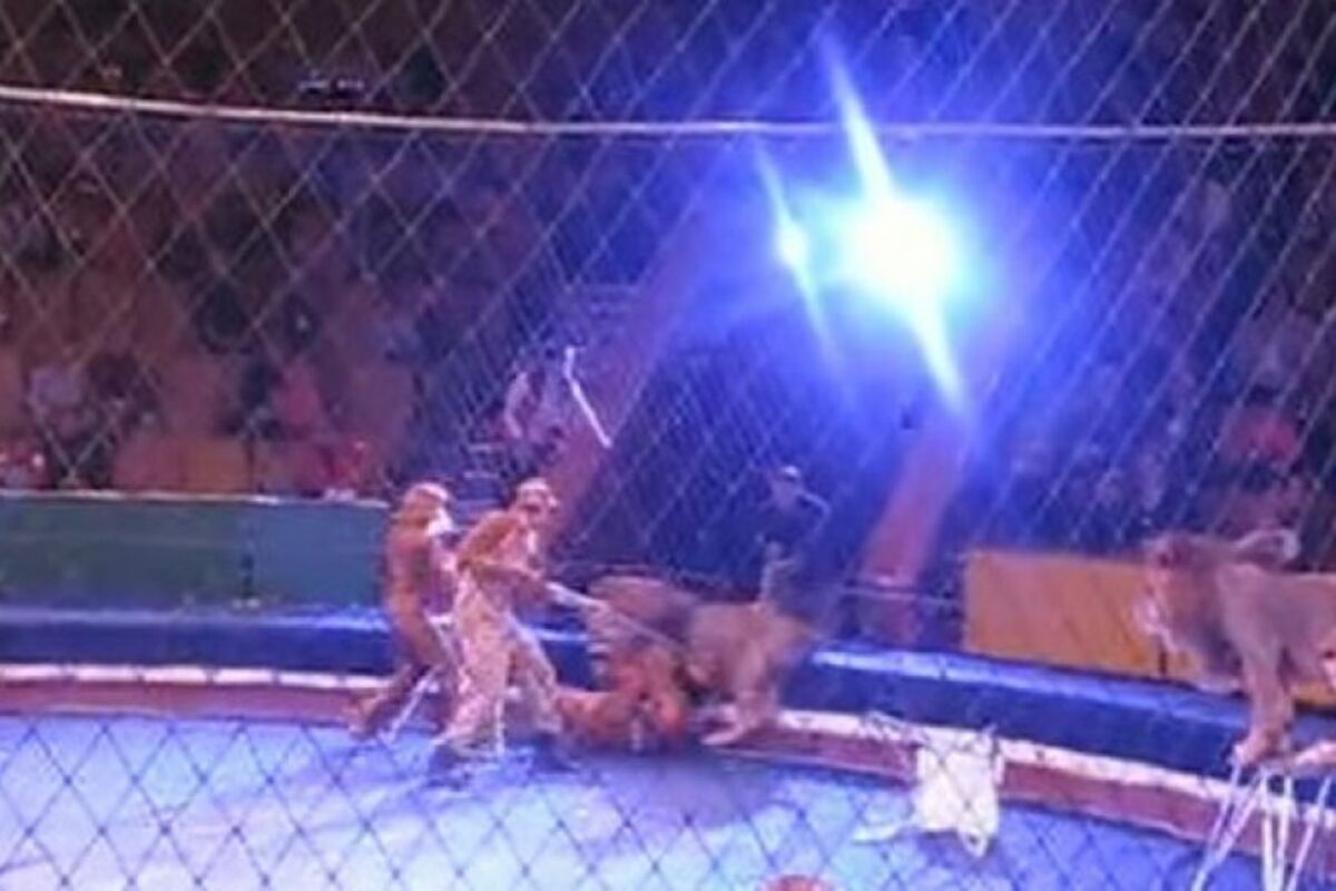 Dve zveri su izgubile estrpljenje i napale svog trenera Olekseja Pinka tokom nastupa u Livovu u Ukrajini.