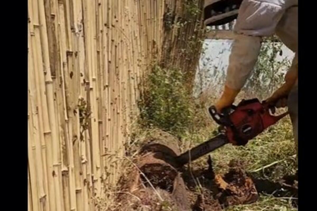 Motornom testerom je počeo da seče drvo, a onda je iz njega počeo da izlazi ogroman roj pčela!
