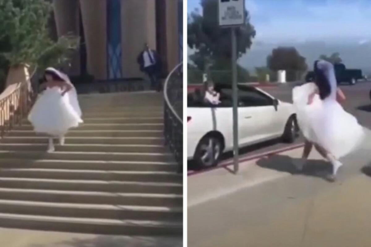 U ovom Tiktok videu, koji je odmah postao viralan, mlada beži sa sopstvene svadbe. Ona istrčava iz sale za svadbu i silazi niz stepenice munjevitom brzinom, a za njom izleće vidno besan mladoženja. Kao u bajci, ona ima prelepu raskošnu venčanicu i mogla da je bude Pepljuga, međutim odlučila se za bele starke i više podseća na Džuliju Roberts iz filma "Odbegla mlada." Mladoženja trči za njom niz stepenice i viče joj da stane, a ona brže bolje uskače u belu luksuznu Tojotu i muškarcu za volanom govori da krene. Vozač je odmah dao gas, a razočarani mladoženja je gađao automobil cipelom i evidentno ostao veoma neraspoložen i ljut.