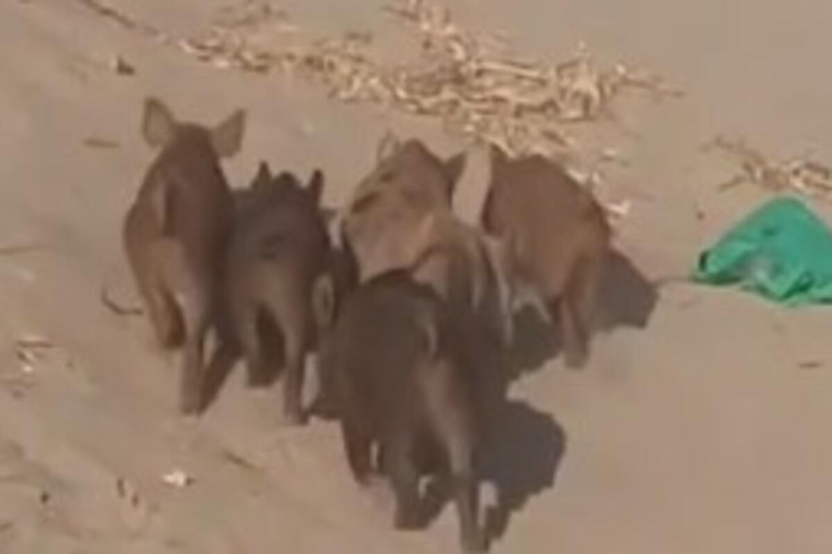 Turisti u Španiji bili su svedoci nesvakidašnje scene, pošto su se divlje svinje spustile na plažu, u potrazi za hranom. Vidimo kako trčkaraju oko ležaljki, preturaju po torbama i kesama, dok se kupači sklanjaju i snimaju telefonima.