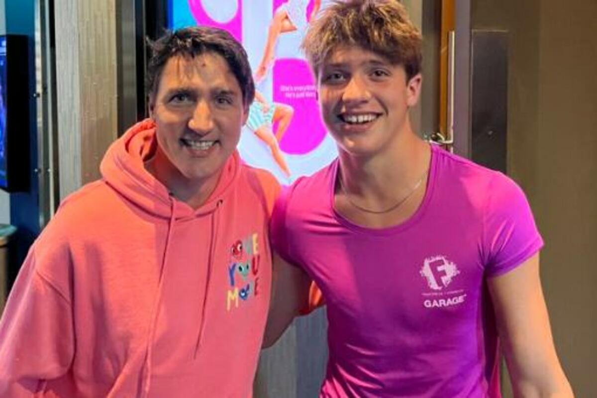 Džastin Trudo i njegov najstariji sin zabeleželi su trenutak ispred bioskopske sale u kojoj su gledali film rediteljke Grete Gervig "Barbi" koji je osvojio planetu i zaradio preko milijardu dolara na bioskopskim blagajnama.