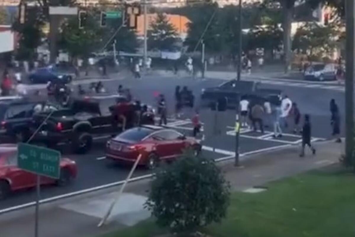 Šokantni trenutak kad je jedan “pikap”, koji je prethodno kružio prometnom raskrsnicom na ulicama Atlante u Džordžji, počeo da kosi pešake nakon što je policija počela da ga juri, snimljen je kamerom.