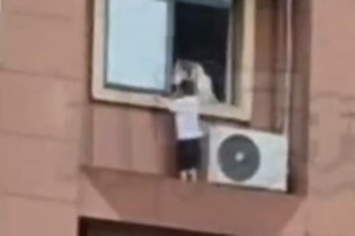 Tačnije, dete je čučnulo pokraj klima-uređaja na izbočini ispod prozora svog stana. Nešto kasnije odrasla osoba se pojavljuje na prozoru i naređuje dečaku da uđe u stan.