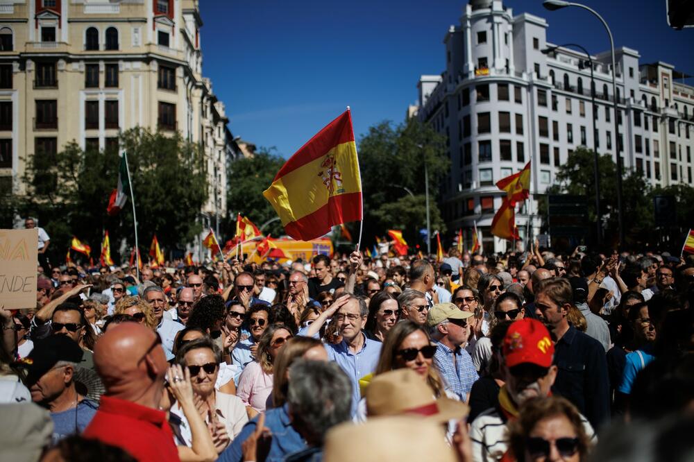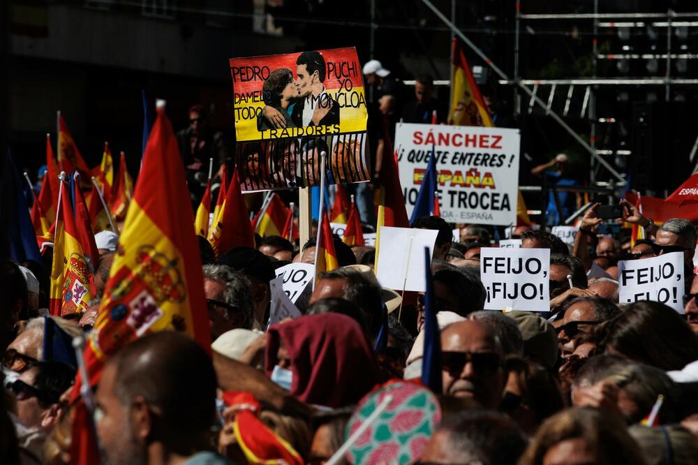 Desetine hiljada Španaca protestovale su danas u Madridu protiv mogućih planova vršioca dužnosti premijera Pedra Sančeza da amnestira katalonske separatiste da bi dobio podršku katalonskih separatističkih partija da bi ostao na toj funkciji nakon izbora koji su održani u julu.
