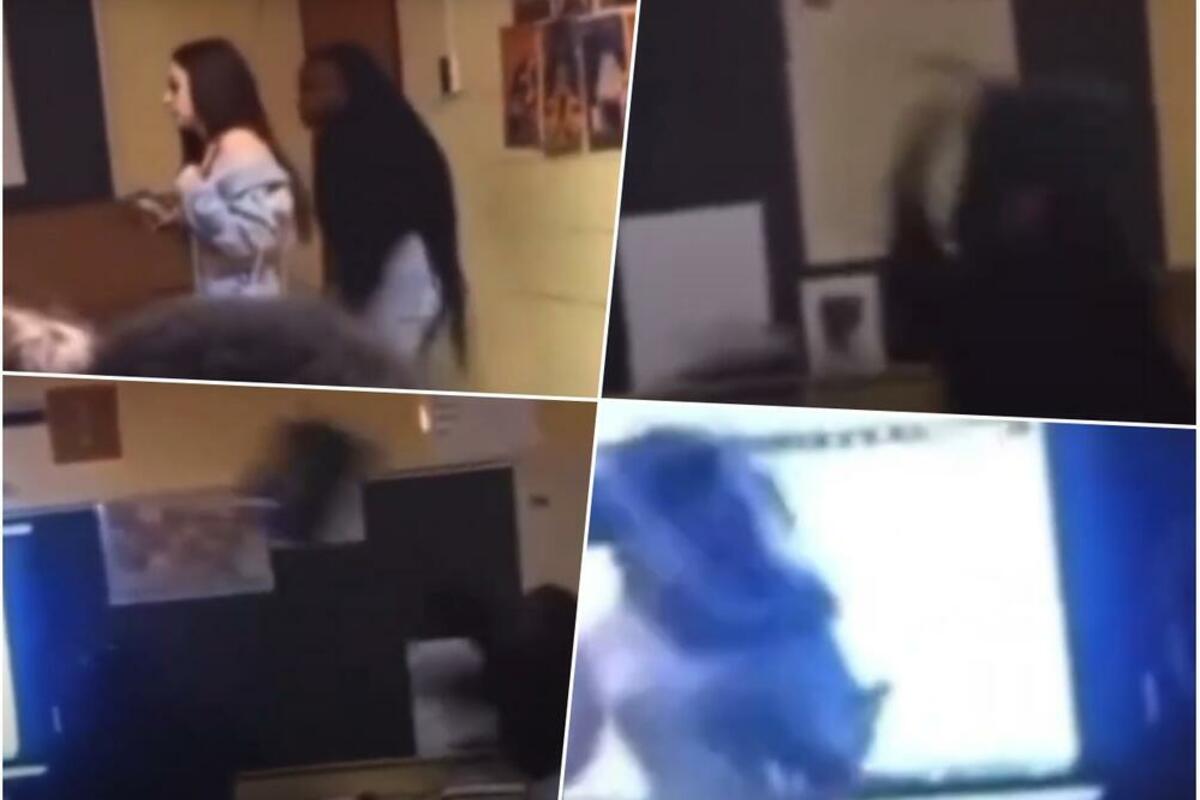 Na šokantnom snimku incidenta vidi se učenica srednje škole kako stoji blizu vrata učionice dok viče na vršnjaka koji se ne vidi. Tinejdžeri sve vreme vređaju jedni druge dok nastavnica stoji između njih pokušavajući da smiri situaciju.