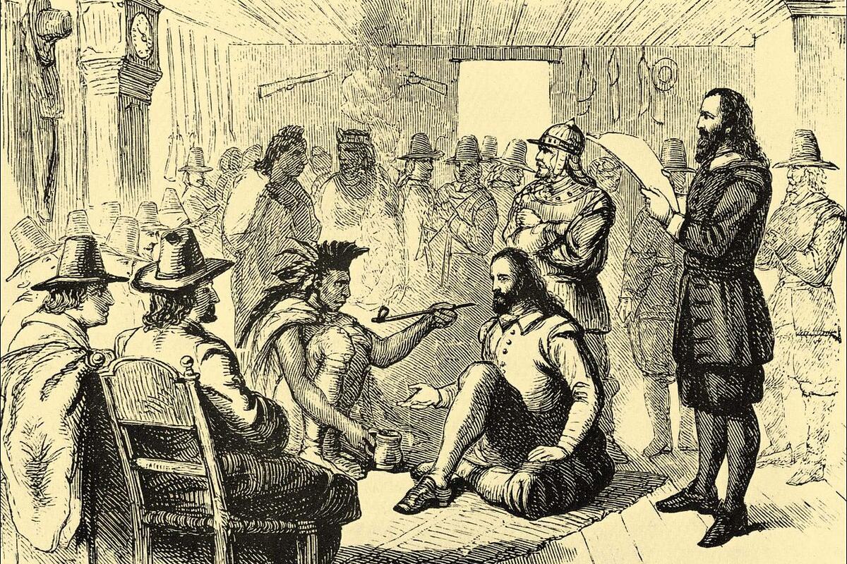 Splet različitih okolnosti posle dolaska Engleza na tlo Amerike doveo je do sukoba između Evropljana i domorodaca. Zvanična priča SAD o Danu zahvalnosti jeste gozba zahvalnosti koja je usledila posle godinu dana boravka Engleza u Americi koji su uspeli da prežive uz pomoć darova koje su dobili od Indijanaca.