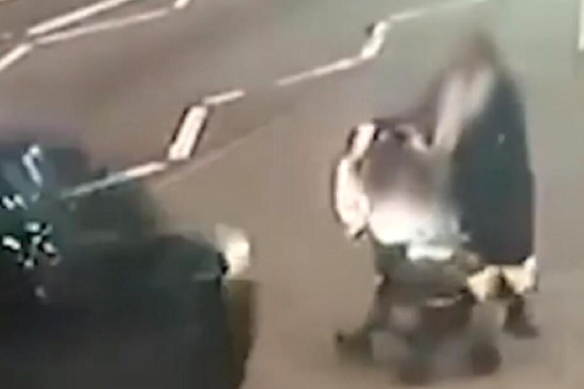 Na video snimku vidimo majku koja gura dete u kolica i priprema se na udarac automobila koji se prevrće, a nekoliko sekundi kasnije majka sa kćerkom se pojavljuje bez ozbiljnijih povreda.