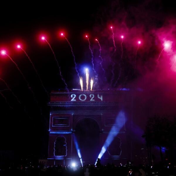 Ne tako povoljan, ali ipak nezaobilazan grad, Pariz je svoje građane i posetioce nagradio vatrometom i svetlosnim efektima koji su se širili iza Trijumfalne kapije tokom dočeka Nove 2024.