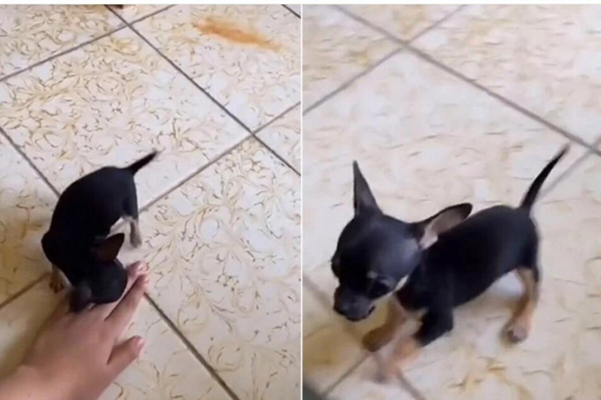 Na snimku koji je na TikToku prikupio više od 2 miliona pregleda vidi se psić koji "napada" papuču svoje gazdarice. Ona na sve načine pokušava da ga se otarasi pazeći da ga slučajno ne zgazi, ali štene ne odustaje.