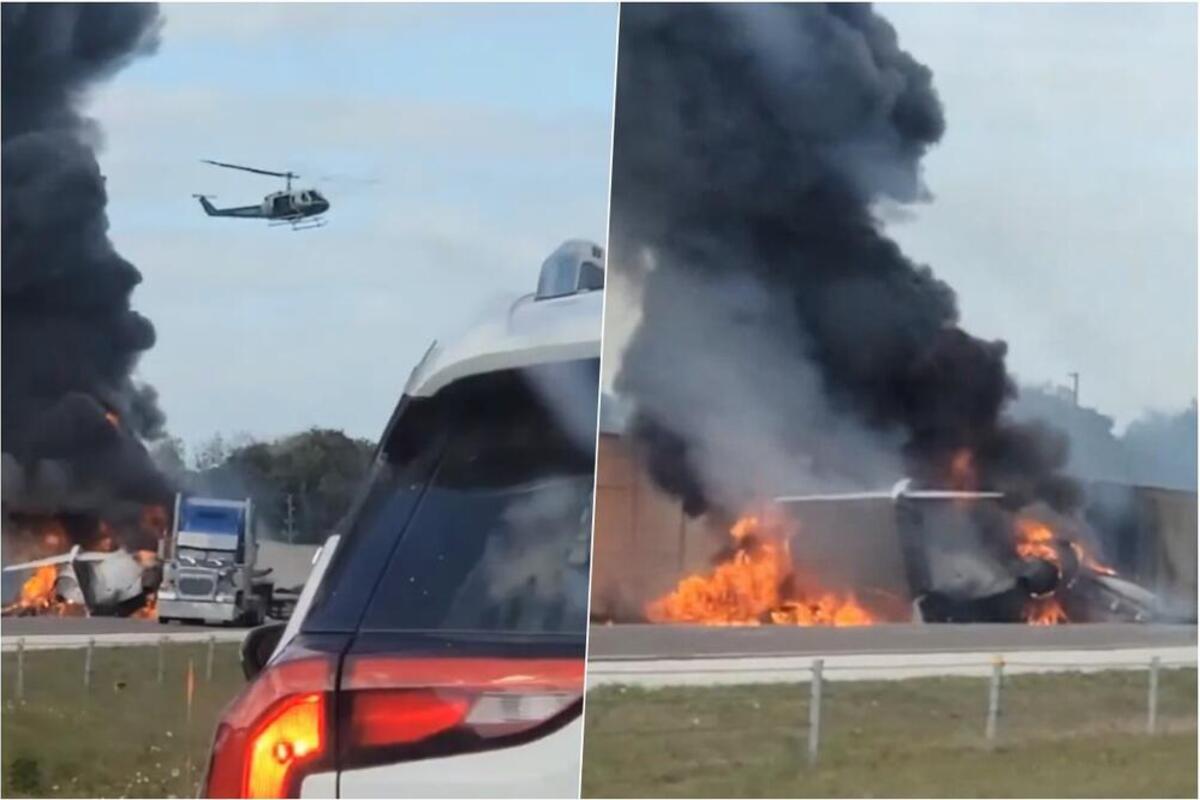 Privatni avion sa petoro putnika udario je u vozilo na autoputu na Floridi izazvavši ogromnu eksploziju.